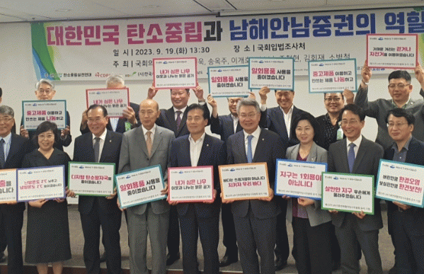 전라남도에 따르면 19일 오후 국회 입법조사처 대회의실에서 ‘대한민국 탄소중립과 남해안 남중권의 역할’이라는 주제로 국회포럼이 열렸다.