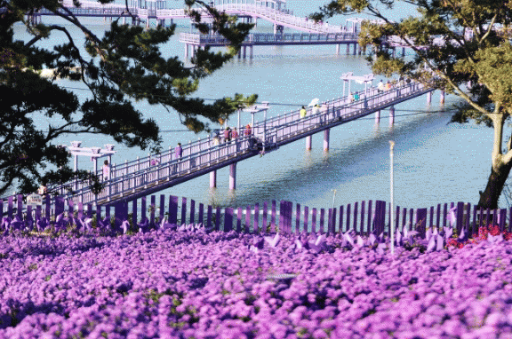 퍼플섬 아스타 정원에는 4만 2천㎡ 부지에 삼천만여송이 아스타 꽃이 진한 보라색 옷을 입고 관광객을 맞이할 준비를 하고 있다. 아름다운 바다와 퍼플교가 바라보이는 아스타 정원의 아름다운 경관은 관광객의 마음을 사로잡을 만하다.