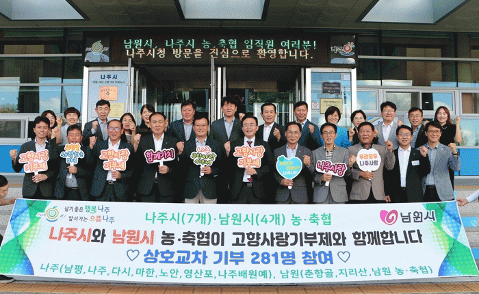 이에 윤병태 나주시장은 “올해부터 시행되고 있는 고향사랑기부제를 위해 상호 기탁해 주신 양 기관에 진심으로 감사드린다”며 “남원시의 파프리카와 고랭지 포도, 나주시의 배와 홍어 등 지역별 답례품들이 널리 알려지고, 결국 특산품 판로 확대와 지역경제 활성화까지 이어지길 기대한다”라고 말했다.