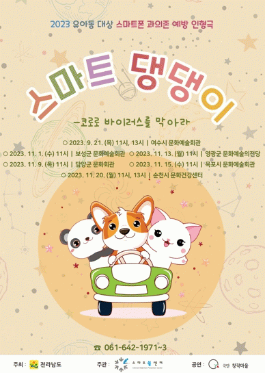 전남도는 21일 여수 문화예술회관에서 뮤지컬 인형극 ‘스마트 댕댕이 코로로 바이러스를 막아라’를 개최한다.