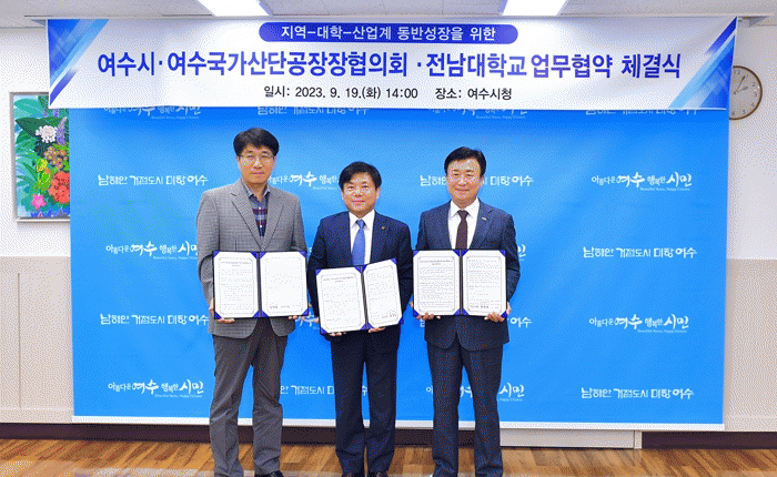 협약에 따르면 ▲여수시는 지·산·학 연계 지역특화산업 전략 수립과 글로컬대학 30 사업의 공동 추진 ▲여수국가산단공장장협의회는 지역특화산업 인재양성을 위한 협력 ▲전남대는 글로컬대학30 사업 발굴 및 지역발전 활성화 방안 마련 등을 수행한다.
