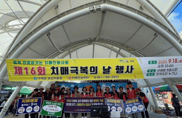구례군치매안심센터는 치매 예방 체조 따라 하기 및 치매 O·X 퀴즈 등을 진행하여 주민들에게 치매 관리의 중요성을 알렸다. 또한 치매파트너(치매환자를 배려하는 따뜻한 동반자)들과 함께 기억 키움 다방을 운영하는 등 치매 인식 개선 활동도 전개했다.