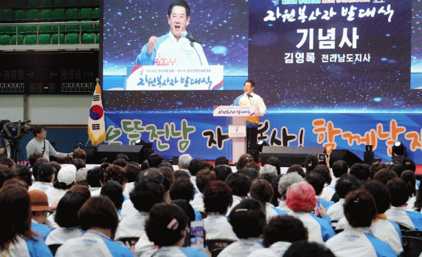 발대식에선 김영록 전남도지사, 박홍률 목포시장, 10대부터 80대까지 다양한 연령층의 자원봉사자 1천여 명이 참석해 ‘으뜸전남 자원봉사! 함께날자 감동체전!’을 슬로건으로 굳건한 성공 개최 의지를 다졌다.