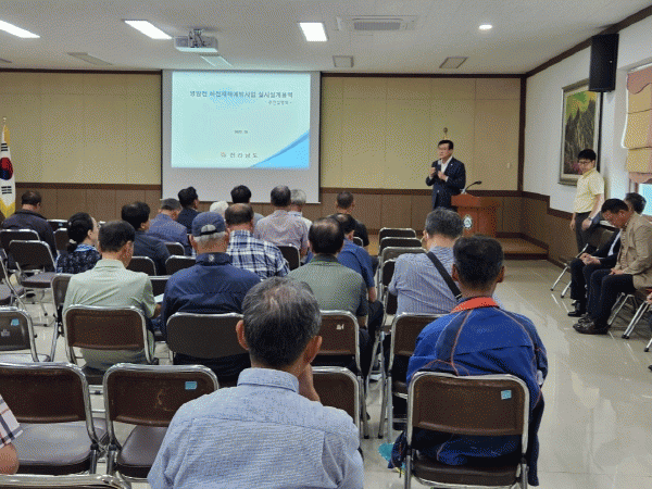 이날 설명회는 신승철 도의원을 비롯해 전남도 자연재난과 및 영암군 관계 공무원, 지역주민 등 50여 명이 참석한 가운데 주요 사업내용과 향후 과업 추진계획 을 설명하고 의견수렴의 시간을 가졌다.