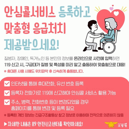 가입이 어려워 도움이 필요한 군민은 강진소방서 대응구조과으로 문의하면 소방서에서 대리 등록할 수 있다.