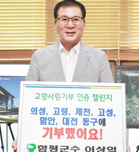 이상익 함평군수는 “고향사랑기부 인증 챌린지에 동참하게 되어 뜻깊게 생각한다”며 “이번 챌린지를 통해 자매·우호 도시 간 상호발전을 응원하며 고향사랑기부제의 성공을 위해 함께 노력하겠다”고 전했다.
