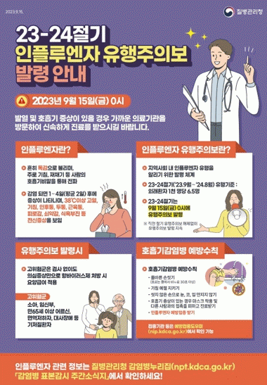 코로나19 대유행 기간 인플루엔자 유행이 없어 지역사회 내 인플루엔자 바이러스에 대한 자연면역이 감소했고, 올해 3월 코로나19 방역 정책이 전면 완화되면서 대면 활동 증가, 손씻기·기침예절·마스크 쓰기 등 개인위생 수칙에 대한 긴장감 완화 등으로 인플루엔자 유행이 이어지고 있다.