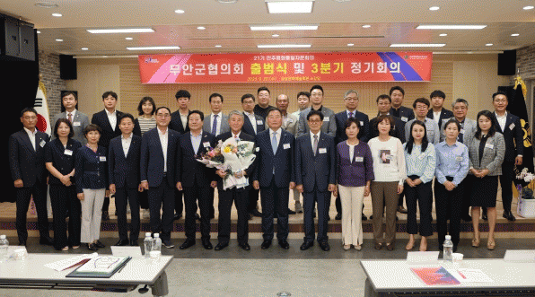 이날 출범식은 고재우 전임회장 이임사, 김영준 신임회장 개회사(취임사), 김산 대행기관장 축사, 김경현 무안군의회 의장 축사, 제21기 무안군협의회 구성현황 보고, 자문위원 위촉장 전수, 자문위원 선서 순서로 진행됐다.