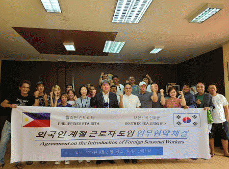 군은 계절근로자 도입 업무협약 체결팀을 구성, 필리핀 산타리타군에 파견해 현지 실사와 함께 계절근로자 도입 협약을 체결했다.