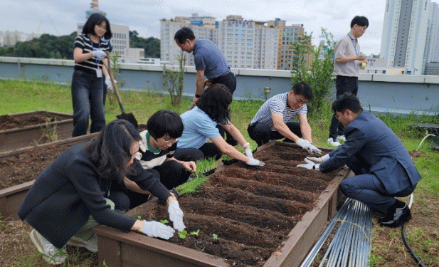 광주시는 지난 2021년 옥상정원의 활용도를 높이고 기후 위기 대응 농업 생태공간 확대를 위해 옥상텃밭을 조성했다. 특히 직원들이 대거 참여하면서 조직 유대관계 강화에 크게 기여하고 있다.
