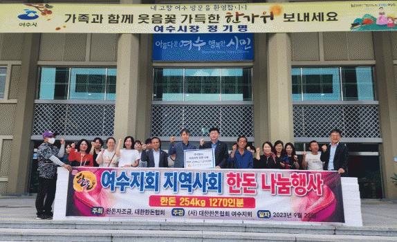 대한한돈협회 서학수 지회장은 “작은 정성이지만 우리 이웃이 추석을 든든하게 보내길 바라는 마음을 담았다”며 “경기가 회복되어 풍족한 일상이 돌아오길 바란다”고 말했다.