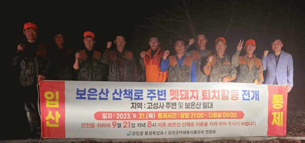 전재영 환경축산과장은 “앞으로도 멧돼지 등 각종 유해 야생돌물로부터 군민의 안전과 재산을 보호함은 물론 아프리카돼지열병(ASF) 예방에도 최선을 다하겠다”고 말했다.