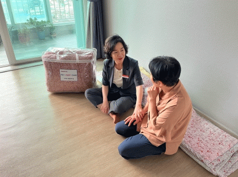 이번 행사는 추석을 앞두고 통합사례관리대상자의 환절기 대비 건강 유지를 위해 추진한 것으로 총 140만 원 상당의 차렵이불과 베개를 준비하여 각 가정을 직접 방문해 전달하고 안부를 살폈다.