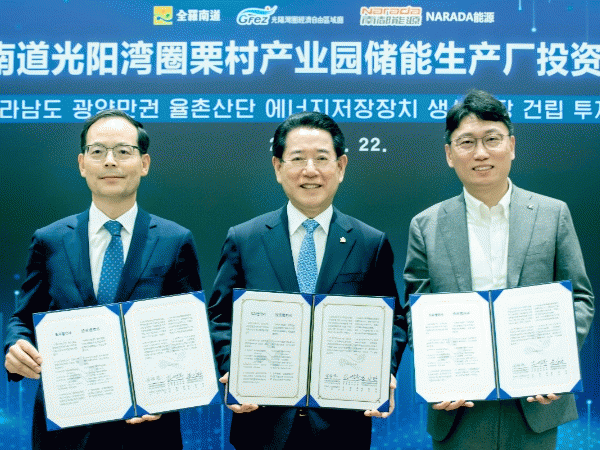 중국을 방문 중인 김영록 지사는 이날 오전 상하이 홍차오 힐튼 호텔에서 송상락 광양만권경제자유구역청장, 박송철 나라다에너지 대표 등이 참석한 가운데 광양만권 율촌산단에 에너지저장장치 생산공장을 건립키로 하는 투자협약식을 가졌다.