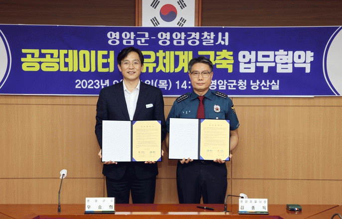 영암군이 21일 군청에서 영암경찰서(서장 김종득)와 ‘공공데이터 공유체계 구축 업무협약’을 맺었다.