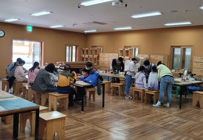 전 연령이 참여할 수 있는 ‘반제품’ 체험, 초등 4학년 이상이 하트문패·연필통·책꽂이·저금통을 만드는 ‘우드버닝’ 체험, 중학생 이상이 주차중·노크·캐릭터를 만드는 ‘쿠미키’ 체험과 미니의자·3단서랍장·탁자를 만드는 ‘DIY’ 체험이 대표적이다.