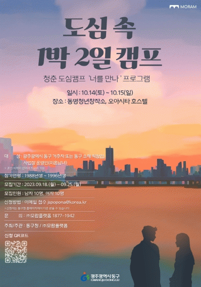 참가 대상은 동구에 거주하거나 사업장을 운영 중인 청년(1988년~1996년생)으로 혼인 이력이 없는 남녀 각 10명씩 총 20명이다. 참가 신청은 이메일로 접수하면 되고, 기타 자세한 사항은 청년체육과 청년정책계로 문의하면 된다.