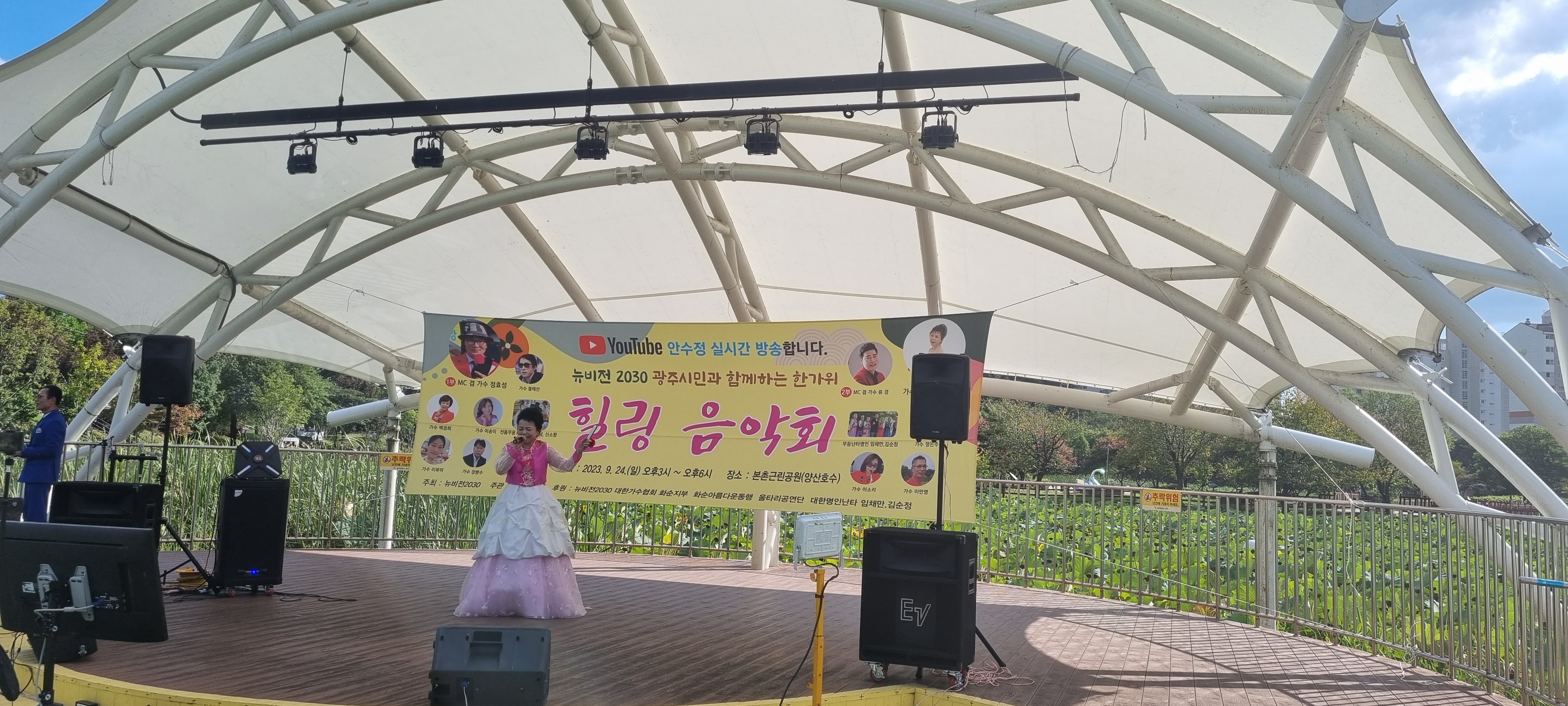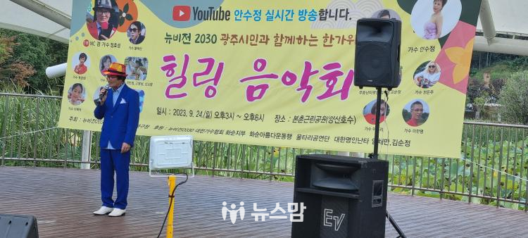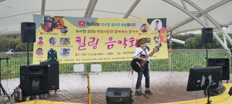 광주북구청과 뉴비전2030(회장 오방용), 대한가수협회 화순지부는 24일 오후 광주 본촌근린공원에서 ‘광주시민과 함께하는 힐링음악회’를 개최했다.
