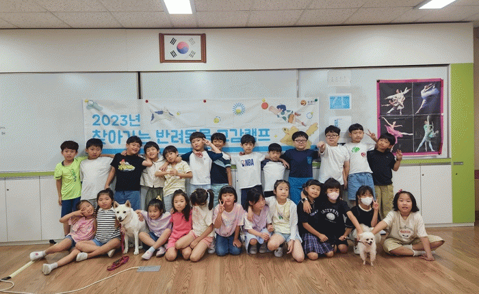 반려동물 교감캠프는 반려견을 매개로 반려견의 특성을 이해하고 교감활동(반려견 만져보기, 함께 놀이하기, 먹이주기 등)을 통해 아이들과의 정서적 공감, 일상생활 속 펫티켓을 배울 수 있는 프로그램이다.