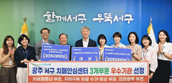 아울러 광주광역시광역치매센터 주관 공모전에서 서구는 치매 극복을 위해 지역사회 내 유관기관들과 상호 유기적인 협력과 연계를 통해 체계적인 치매돌봄 협력 체계를 구축했다는 평가를 받아 대상의 영예를 안았다.