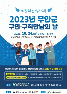 김산 군수는 “이번 구인·구직 만남의 날을 통해 인력난을 겪고 있는 기업과 취업에 어려움을 겪는 구직자 간 만남의 장을 통해 침체된 고용시장의 활성화를 기대한다”며, “무안군 뿐만 아니라 도내 우수한 기업들이 많이 참여하기를 바란다”고 전했다.