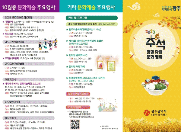 국립광주과학관에서도 가족극장, 민속인형극, 전통탈춤공연을 즐길 수 있으며, 광주역사민속박물관은 ‘2023년 추석맞이 한마당’을 준비했다.