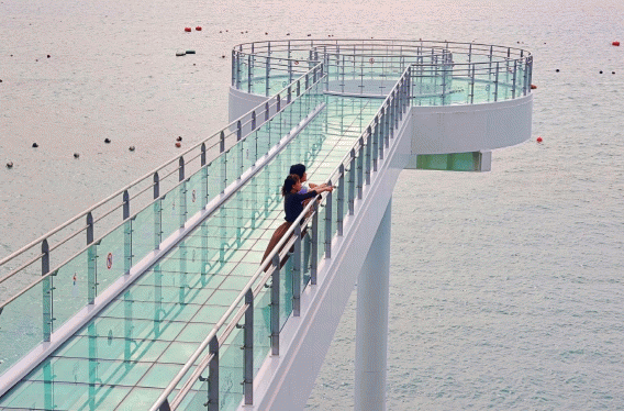 스카이워크는 육지에서 바다쪽으로 길이 41m, 높이 18m의 직선형으로 뻗은 형태로, 전 구간 강화유리를 사용해 땅끝바다를 직접 걸어보는 듯한 스릴있고 생생한 체험을 할 수 있다.