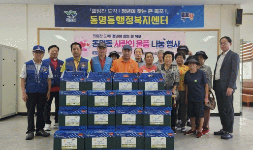홍성채 동명동장은 “명절마다 잊지 않고 취약계층을 위해 위문품을 기탁해주시는 모든 분들께 감사드리고, 후원받은 성품을 꼭 필요한 곳에 전달해 따뜻한 추석 명절을 보낼 수 있도록 노력하겠다”고 전했다.