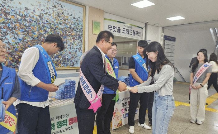이날 캠페인에서 ▲청렴실천 함께해요 ▲음주운전 절대금지 ▲청렴실천 나부터 실천 등의 구호가 적힌 어깨띠를 착용하고 청렴 관련 리플릿과 홍보물 등을 배부하면서 청렴 실천을 당부했다.