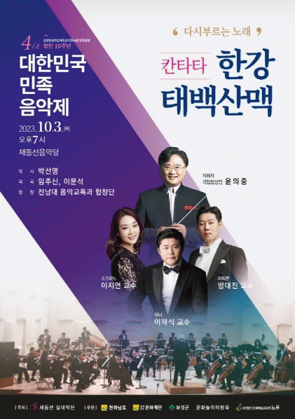 이번 공연에는 윤의중 국립합창단 예술감독이 지휘봉을 잡고, 채동선의 ‘개천절’,‘한강’을 바리톤 방대진(전남대 교수), 테너 이재식(군산대 교수), 소프라노 이지연 등이 출연해 특별한 무대로 선보일 예정이다.