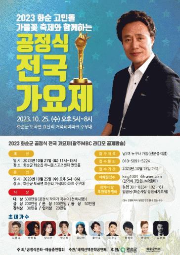 공정식 전국 가요제는 태백산맥문화공연 패가 주최하고 화순군이 주관하며, 화순군과 화순군의회의 후원으로 진행되며 참신하고 실력 있는 신인가수의 등용문이 될 것으로 기대되는 가요제다.
