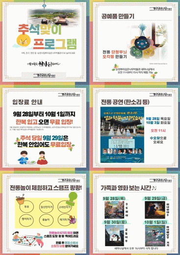 박물관은 추석 당일 무료 개방하며, 한복을 착용한 사람은 연휴 기간모두 무료로 입장할 수 있다.
