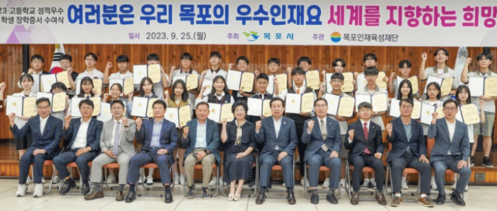 목포인재육성재단은 목포 내 15개 고등학교 재학생 중 직전학기 성적이 3% 이내인 학생을 대상으로 장학금을 지급하고 있다. 올해는 221명을 선발해 1인당 100만원, 총 2억2,100만원의 장학금을 지급했다.