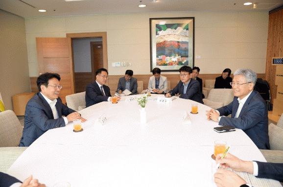 강 시장은 27일 접견실에서 김동철 한전 사장을 접견, 지역 주요 현안을 논의하고 지역 발전에 힘을 모으기로 했다.
