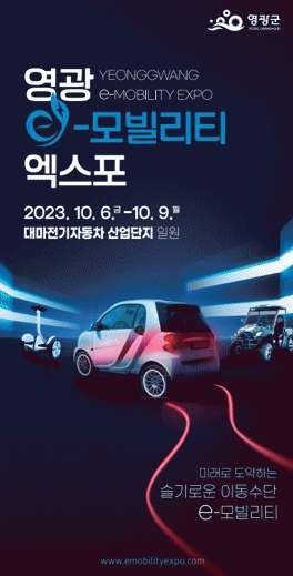 전라남도는 오는 9일까지 4일간 영광 지식산업센터 일원에서 ‘미래로 도약하는 슬기로운 이동수단, 이-모빌리티’라는 주제로 2023 영광 이-모빌리티 엑스포가 펼쳐진다고 밝혔다.
