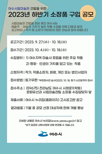보다 자세한 내용은 여수시 홈페이지 고시공고를 참고하거나 문화유산과 시립미술관팀에 문의하면 된다.