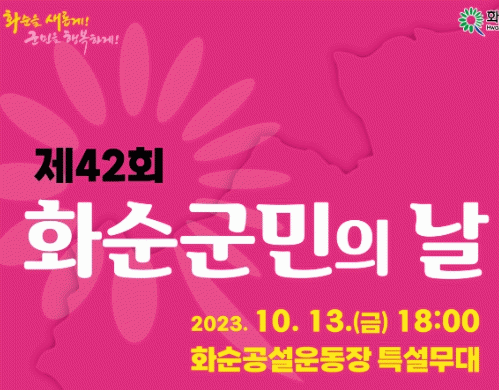 화순군은 이번 군민의 날을 화합과 힐링의 성대한 잔치로 개최할 예정이라고 밝혔다.