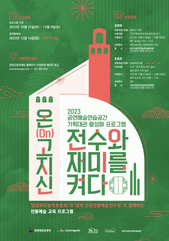 자세한 사항은 (재)담양군문화재단 홈페이지 ‘사업안내’ 페이지 내 링크를 통해 신청이 가능하다.