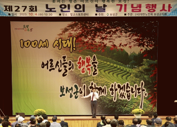 제27회 노인의 날 기념행사는 (사)대한노인회 보성군지회가 주관했으며, 김철우 군수를 비롯한 기관 단체장 50여 명과 지역 어르신 1,000여 명이 참석했다.