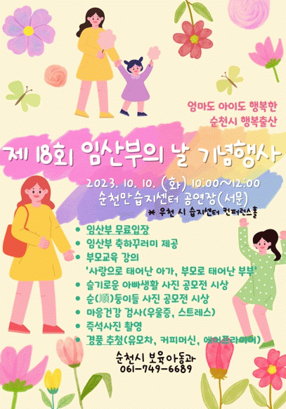 순천시 관계자는 “이번 행사에 많은 임산부가 참여해 행사장과 정원박람회를 즐기기를 기대한다”라며, “임산부가 안전하고 건강한 임신과 출산을 할 수 있도록 임산부 배려 문화 조성을 위해 노력하겠다”라고 말했다.
