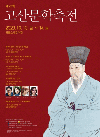 또한 14일에는 고산 청소년 시가낭송대회가 열린다. 우리말글의 아름다움을 한껏 느낄 수 있는 시가낭송대회는 고산으로부터 시작된 시문학의 고장, 해남의 특성을 잘 드러내는 프로그램으로 자리매김하고 있다. 고산 청소년 시서화 백일장은 공모를 통해 7일까지 접수하고 있다.