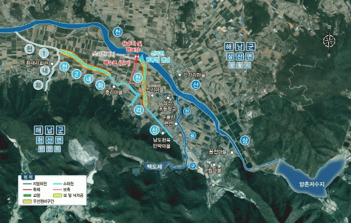 자연재해위험개선지구 정비사업으로 북일 운전(총사업비 99억원), 해남 복평(총사업비 150억원), 현산 고현지구(총사업비 220억원) 사업이 추진되고 있으며, 화산지구에는 풍수해 생활권 종합정비사업(총사업비 456억원)이 추진되고 있다.