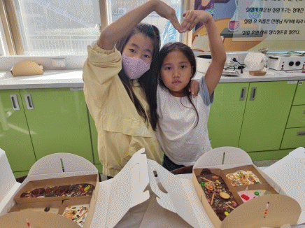 아동들은 이날 한글날을 기념해 2인 1조로 ‘한글 초콜릿’을 만들고 얘기도 나누며 정서적으로 깊이 교류하는 시간을 가졌다.