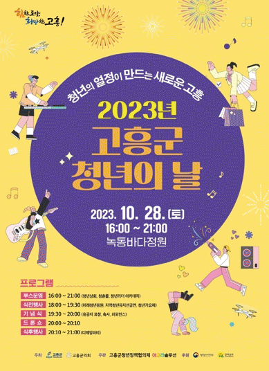 행사주최관측인 군 관계자는 “고흥군에서 처음으로 추진하는 청년의 날 행사는 지역 청년들과 군민들이 직접 만나 소통하고 청년정책에 대해 정책을 알리는 뜻깊은 행사추진과, 드론쇼를 보러오는 관광객들에게도 큰 즐거움을 줄 수 있을 것이라며, 청년가요제와 청년상회에 많은 청년의 참여를 바란다.”라고 말했다.