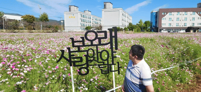 코스모스 단지에는 하트 모양의 산책로가 조성돼 있으며, 흔들 그네, 포토존, 시를 디자인한 조형물을 배치해 포토존으로도 손색없이 갖춰져 있다.