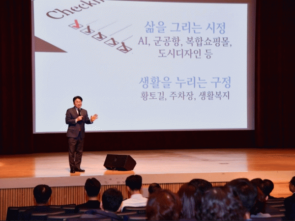 강 시장은 ‘삶을 그리는 시정’, ‘생활을 누리는 구정’이라는 문구로, 시정과 구정의 차이를 조심스럽게 규정했다. 예를 들어 시는 인공지능(AI), 군공항 이전, 복합쇼핑몰, 도시디자인 등 삶을 그리는데 중점을 두는 반면, 자치구는 황톳길, 주차장, 생활복지 등 생활을 누리는데 중점을 둔다는 것이다.
