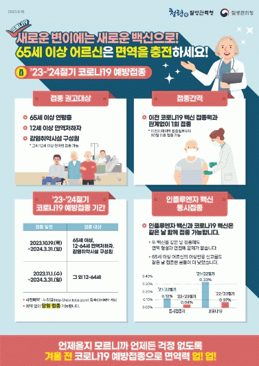 권고 대상은 ▲65세 이상 고령층 ▲12~64세 면역저하자 ▲감염 취약 시설 구성원 등 고위험군이며, 고위험군이 아닌 12세 이상은 희망 시에만 접종한다.