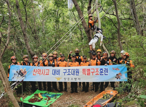 장흥에서는 사자산이 가을철 등산객의 방문이 잦은 산으로 그에 따른 산악사고가 빈도가 높아 이번 산악구조 훈련장소로 선정했다.