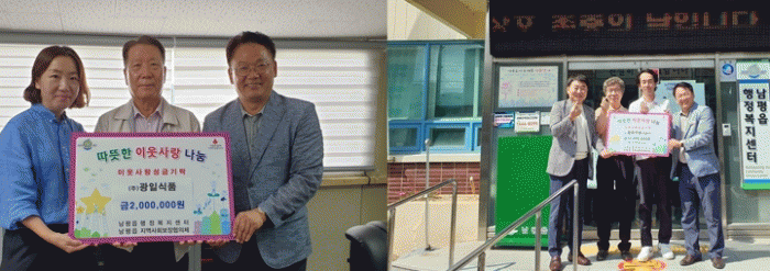9일 남평읍에 따르면 이번 나눔에는 ㈜광일식품, ㈜번개전, 동방산업, 합동주류와 주민 강대복, 김원영 씨가 릴레이로 참여했다.