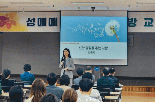 동부교육지원청에 따르면 이번 교육은 한국양성평등교육진흥원 전문강사인 양동옥 한국젠더문화연구원장을 초빙해 ‘선한 영향을 주는 사람’이라는 주제로 진행됐다. 직원들의 양성평등 의식을 고취하고 건전한 조직문화를 조성한다는 취지다.